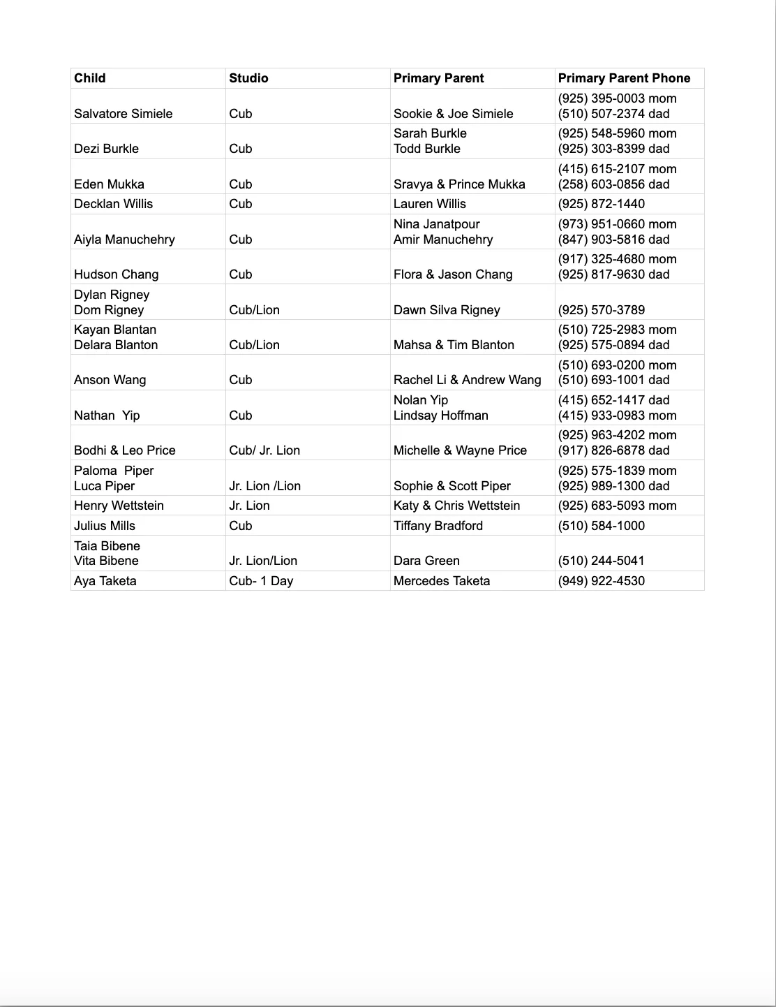 Parent Roster