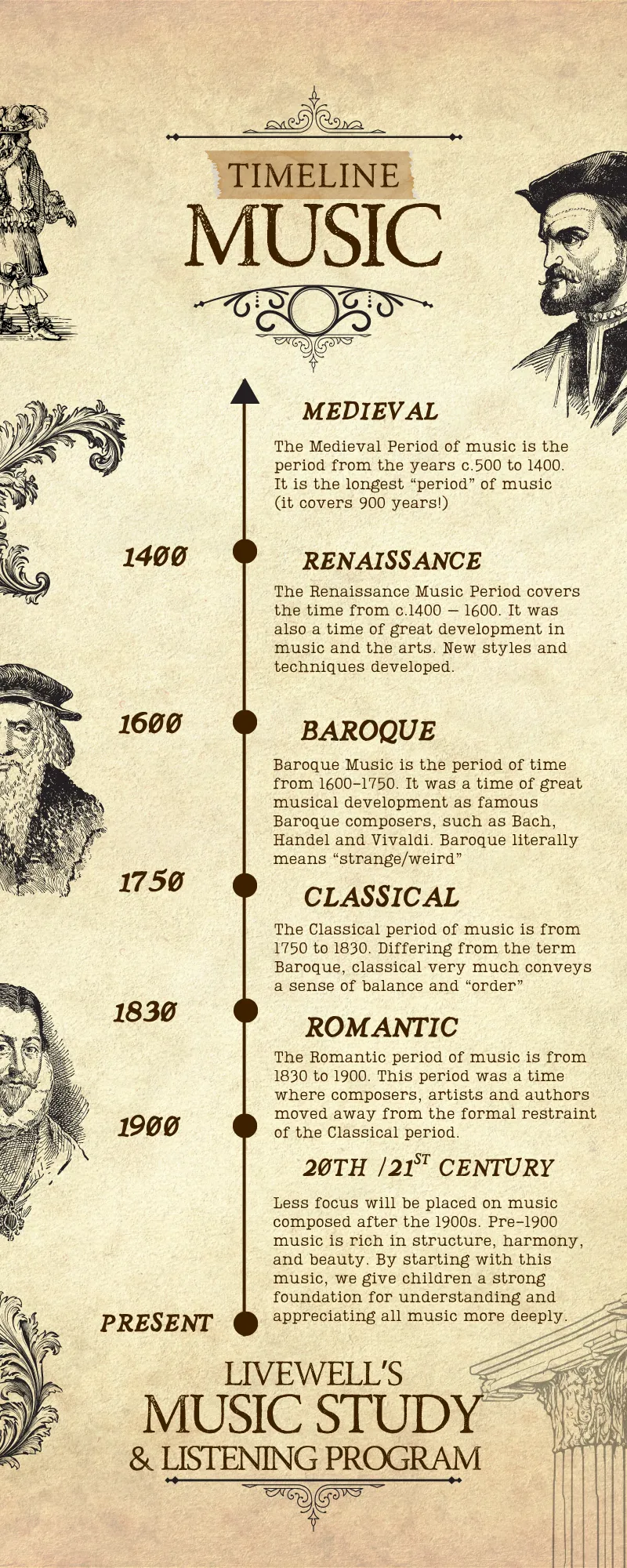 The composers we introduce created works that are still performed centuries later because they speak to something timeless in the human experience. These masterpieces reflect the highest expressions of beauty and human achievement, offering children a sense of cultural rootedness that goes beyond what’s “in style.”