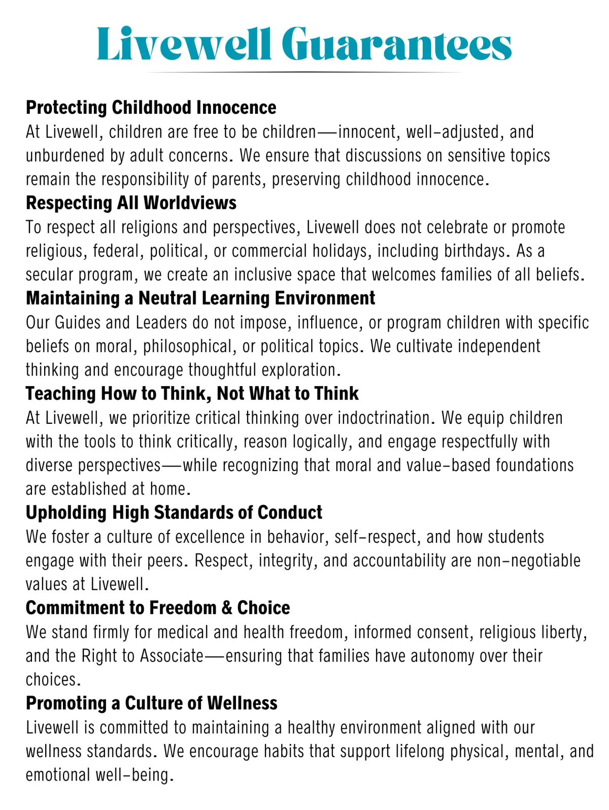 Our mission is to cultivate a dynamic, learner-led environment where children—supported by their families—are empowered to explore their passions, embrace challenges, and grow through personalized, experiential learning. We are committed to fostering critical thinking, leadership, and strong character to prepare students for meaningful, impactful futures.